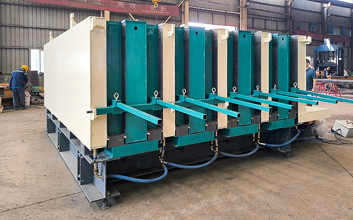 采用液壓系統和磁盒固定等快速方式,開合模時間也有縮短。立模成型總時間相比平模縮短4~6h,立模成型構件的生產周轉次數提高約20%~25%。立模成型工藝實現自動高效蒸養,熱量損耗降低,水泥水化熱量被充分利用,蒸養溫度降低10℃以上,時間也縮短1~2h,節能效果明顯。